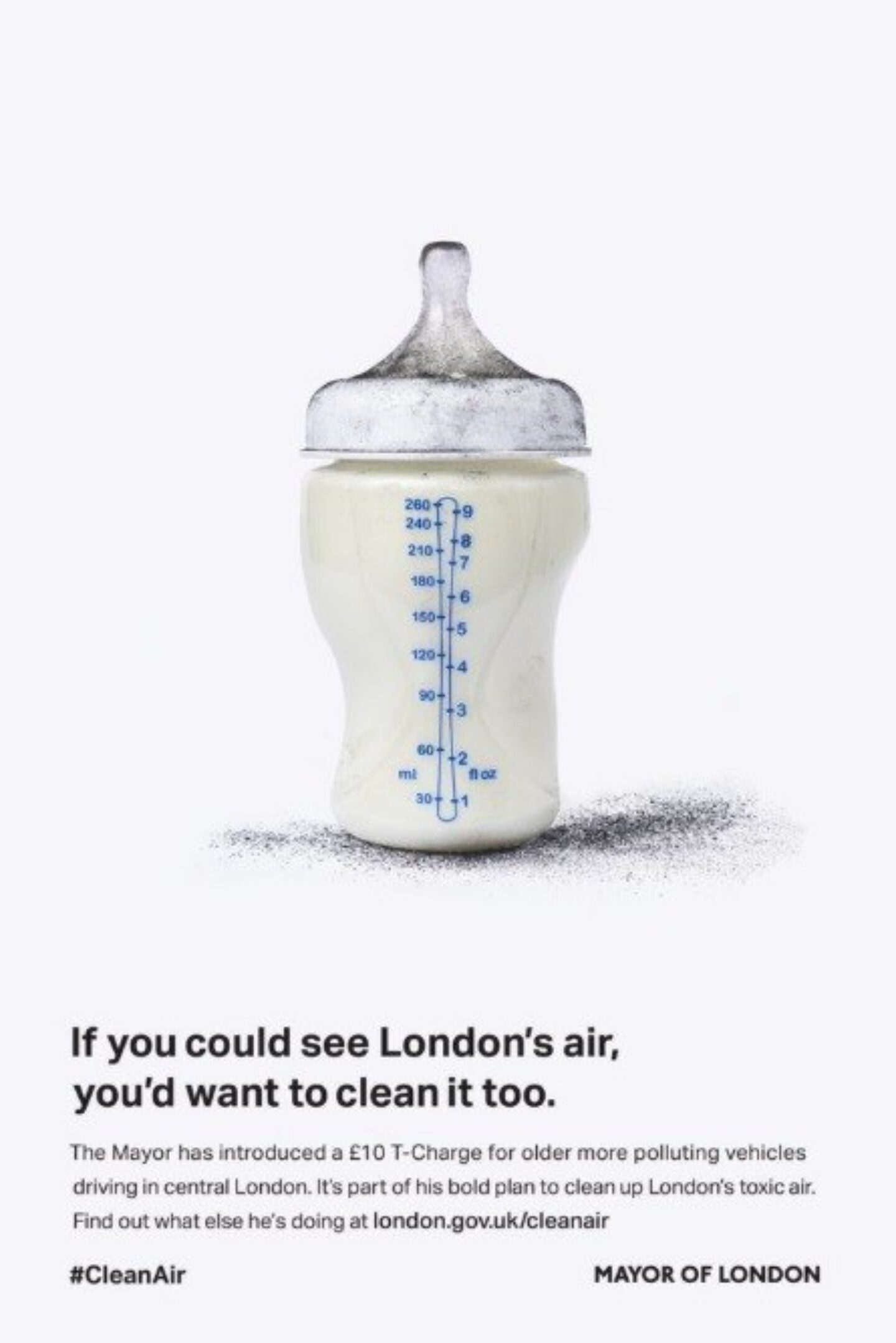 The advert campaign features everyday items such as coffee cups and a baby’s bottle that are dirty with pollution, with headlines such as: ‘if you could see London’s air, you’d want to clean it too’. It is hoped that these striking messages will demonstrate to Londoners the seriousness of the issue and its impact on their health and the environment.