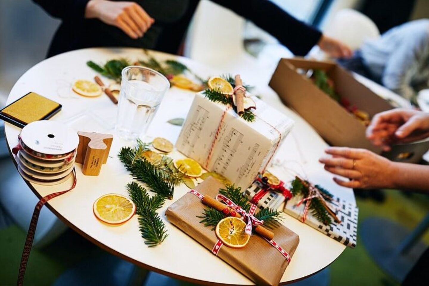 Instead of forking out on expensive wrapping paper made from virgin paper (i.e. trees being chopped down), get inventive! At Paper Round, we spent our Tuesday lunchtime using old music sheets and newspapers to wrap our gifts. They were decorated with dried oranges, apples and cinnamon sticks and other natural decorations such as pine cones.