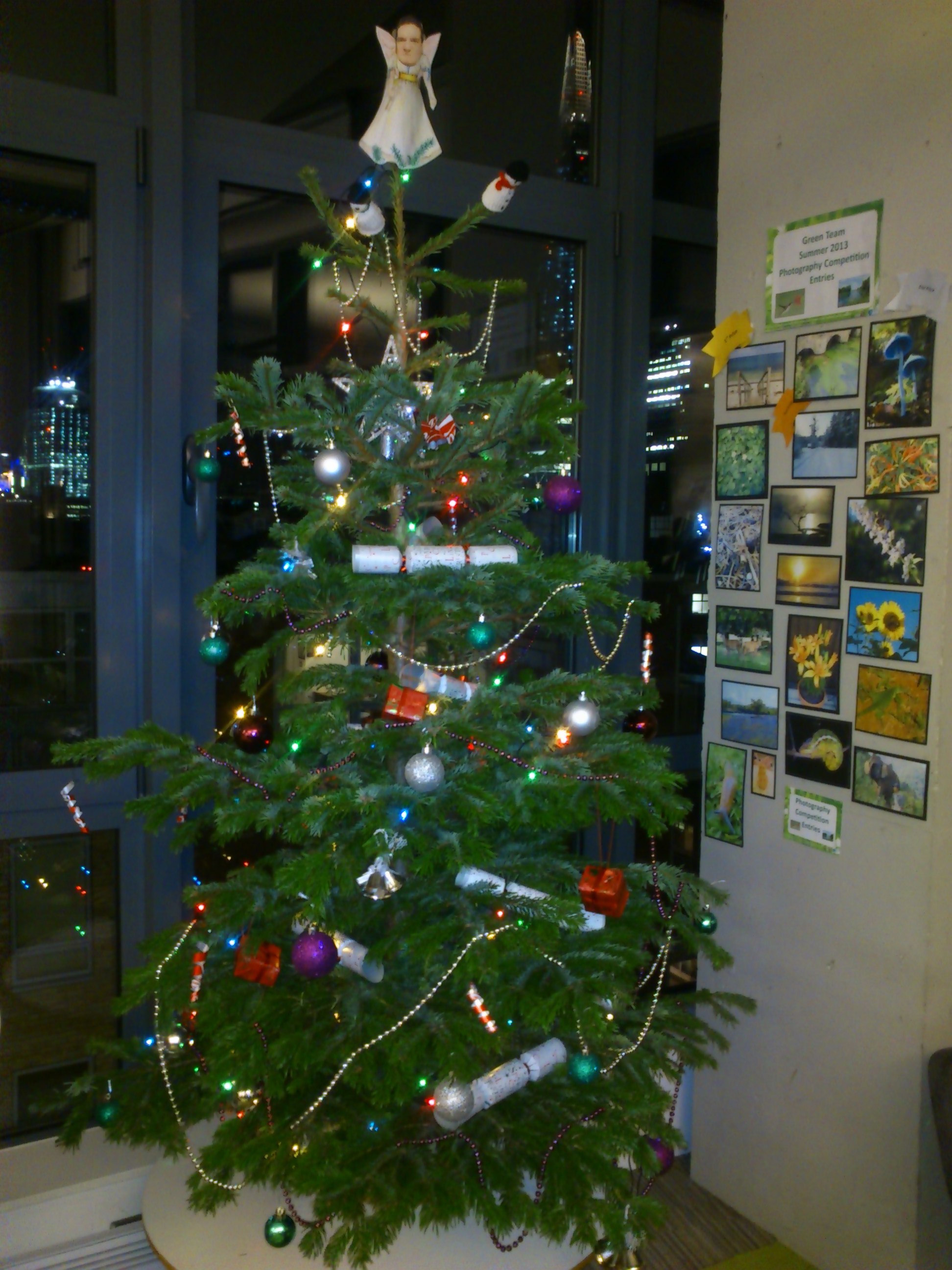 Check out our home made angel on the top of our office tree!