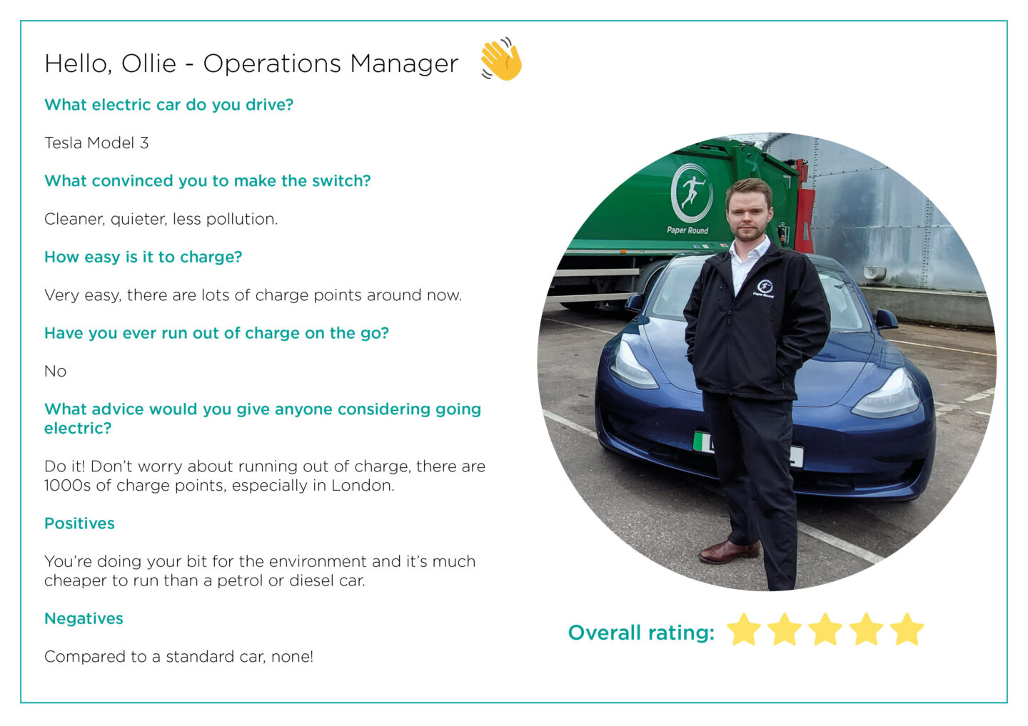 Here at Recorra, we live and breathe sustainability. From our low carbon recycling services, and killer customer engagement; to the electrification of our fleet and the purchasing of green energy across our premises. But we don’t just talk-the-talk, we actually practice what we preach.Of the staff that need a personal car to get around, 7 have already made the brave switch to fully electric (although a few are still waiting on their order)!