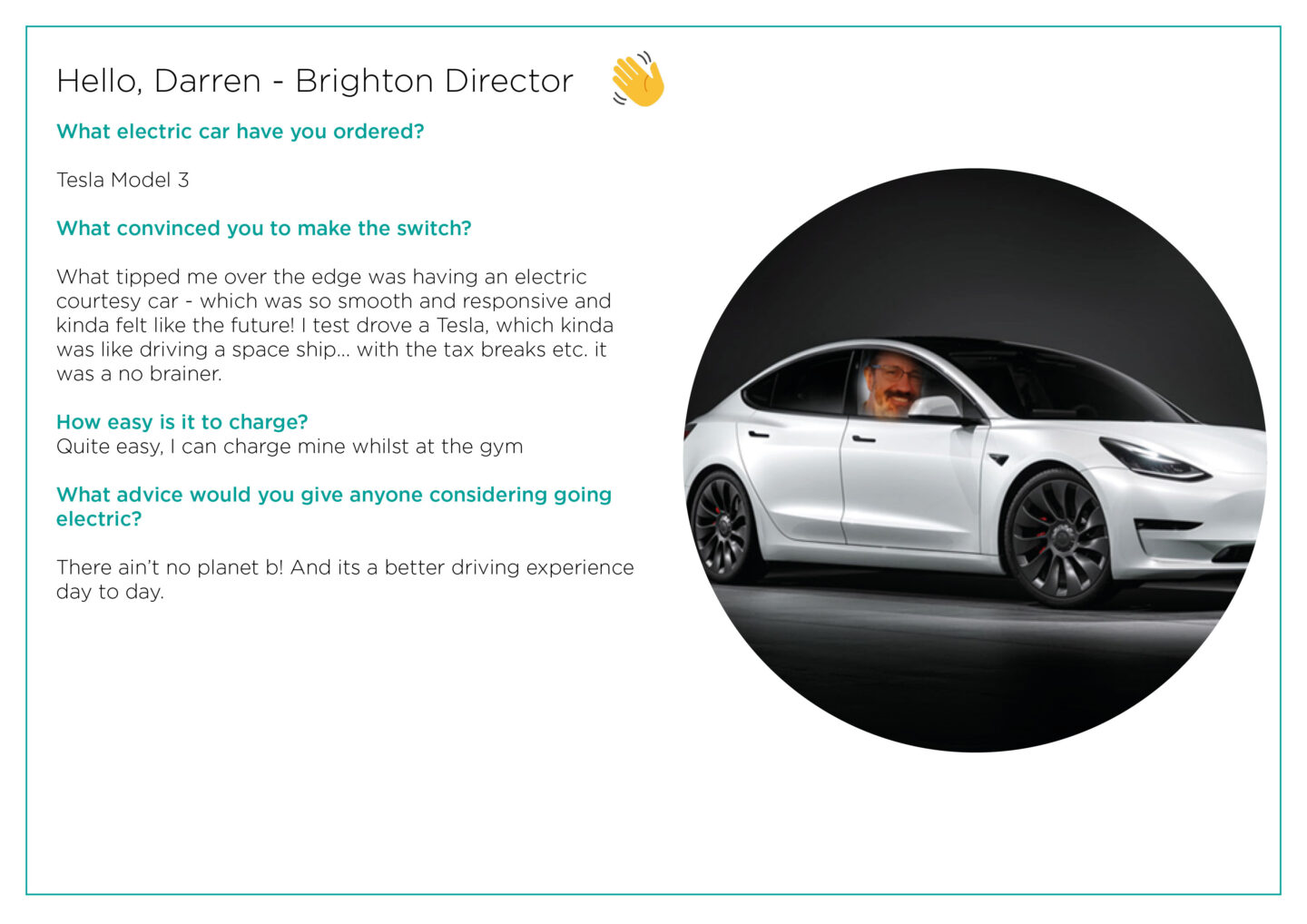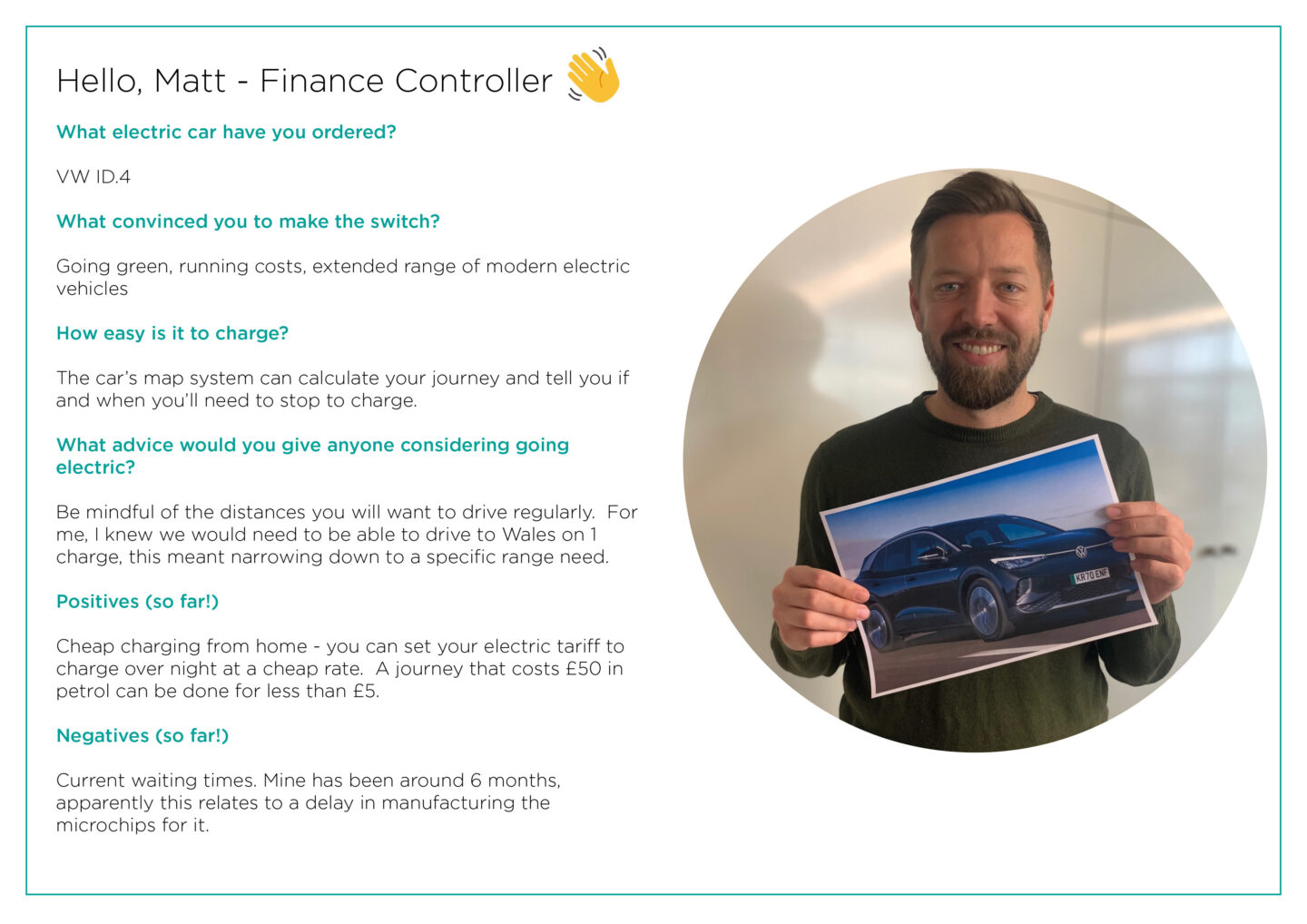 So, post COP26, we thought we’d find out the ins and outs of owning a 100% electric car and what their advice would be to any curious drivers out there who are considering making the switch.
