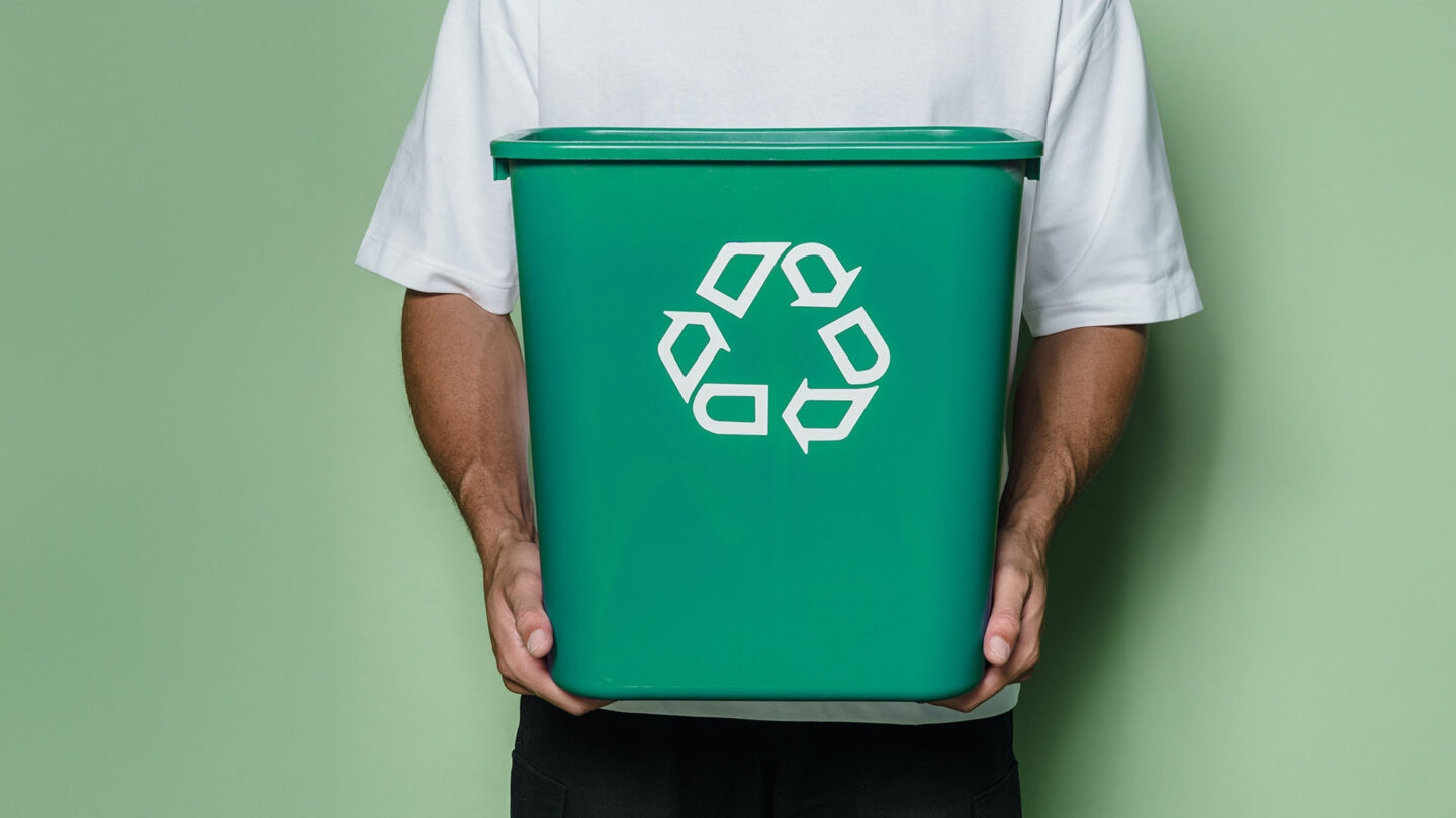 Man holding recycling bin