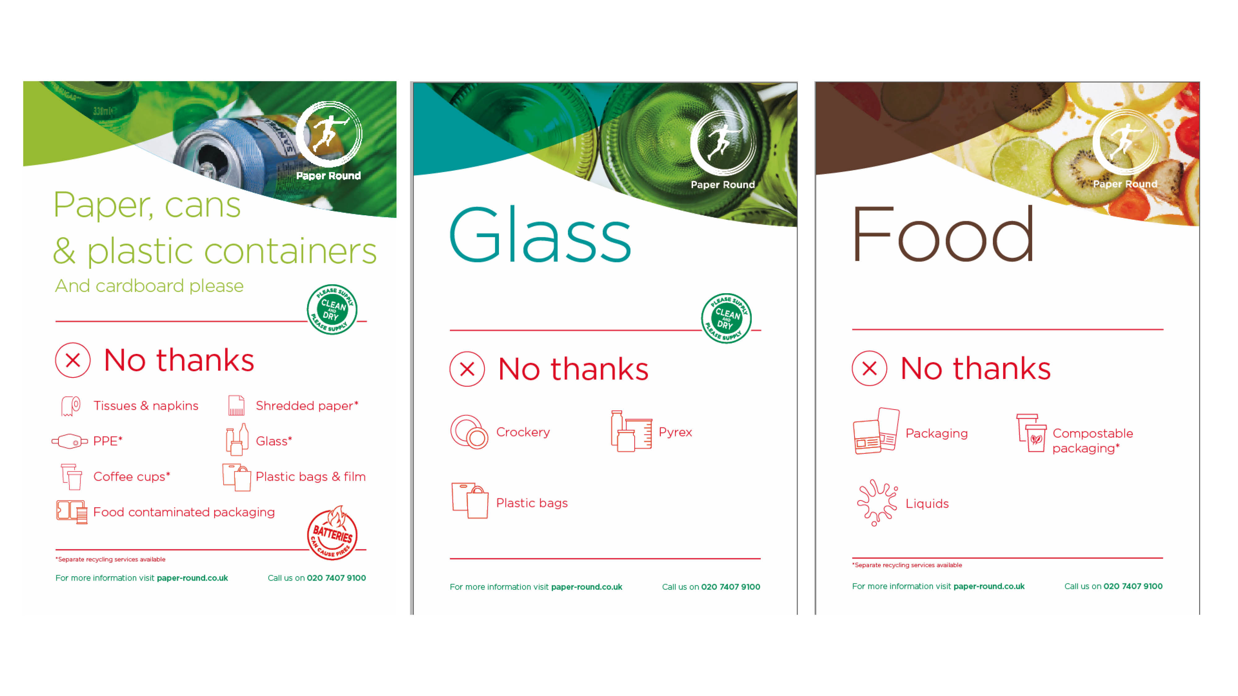 Our new posters say exactly what should go into the bin in the headline. We have removed our ‘yes please’ section and for those that spend longer at the bin, we’ve included a simplified ‘no thanks’ section which uses icons for further clarification.