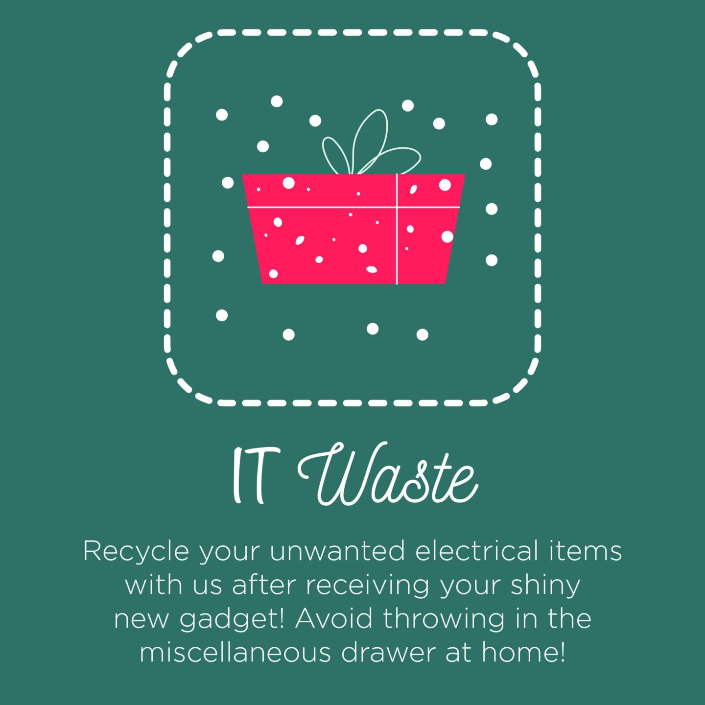 Day 2: IT WasteThis year, lots of you will open your brand-new, state of the art, gadgets on Christmas Day. Spare a thought for your old pieces of tech as a whopping 4.2 million electrical items are abandoned each year. Give your items a new life by either donating them to a local charity or using our IT waste collection services.
