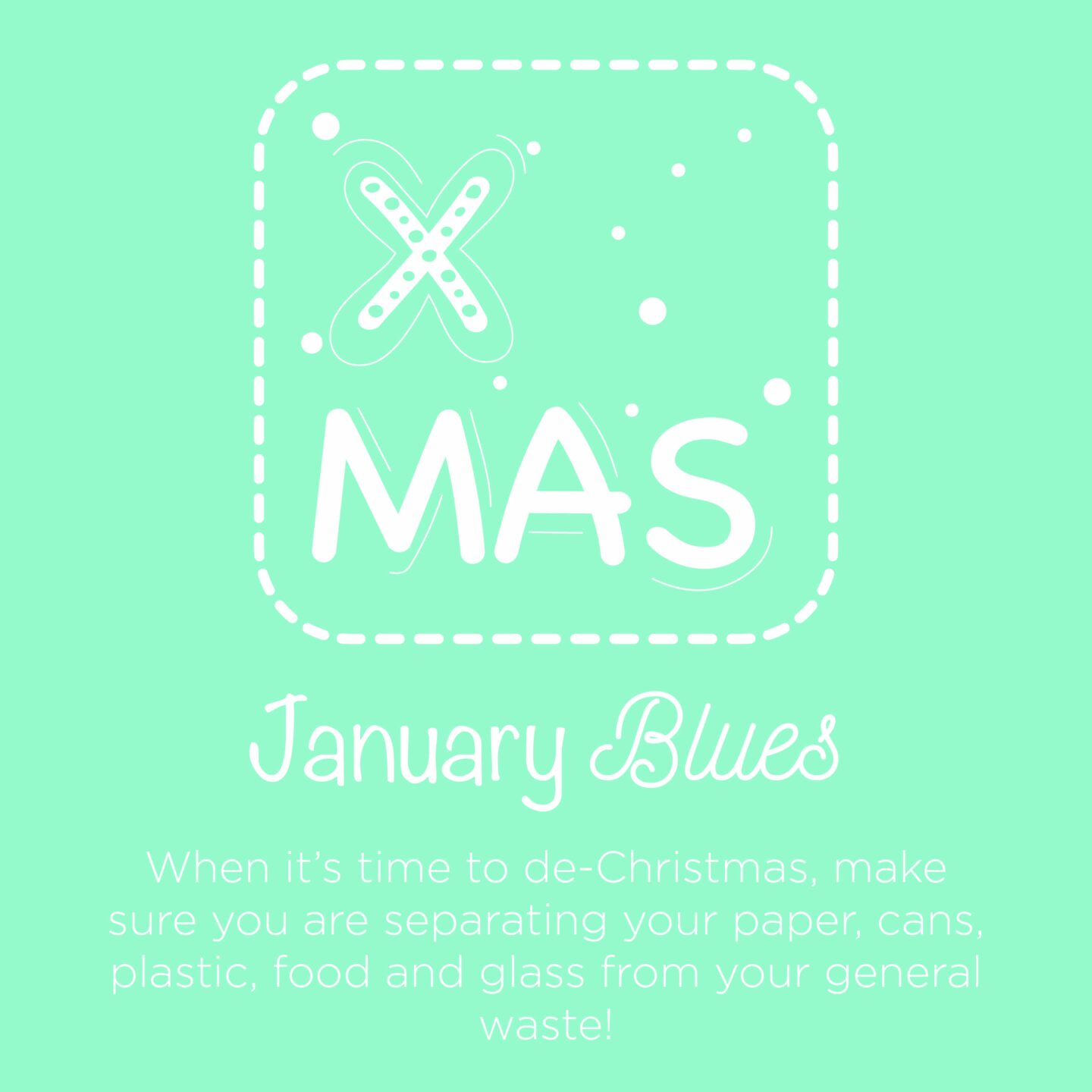 Day 12: January BluesThe new year is often seen as a fresh start and a period used for decluttering our homes. When having your January clean up, make sure you segregate and recycle as much as possible instead of throwing everything into a single black bag. Remember to separate your paper, cans, plastic, food and glass from your general waste… and don’t forget to keep it clean and dry!We hope our 12 Days of sustainable hints and tips will help you this holiday season. From all of us at Recorra, we hope you have a joyful and sustainable Christmas!