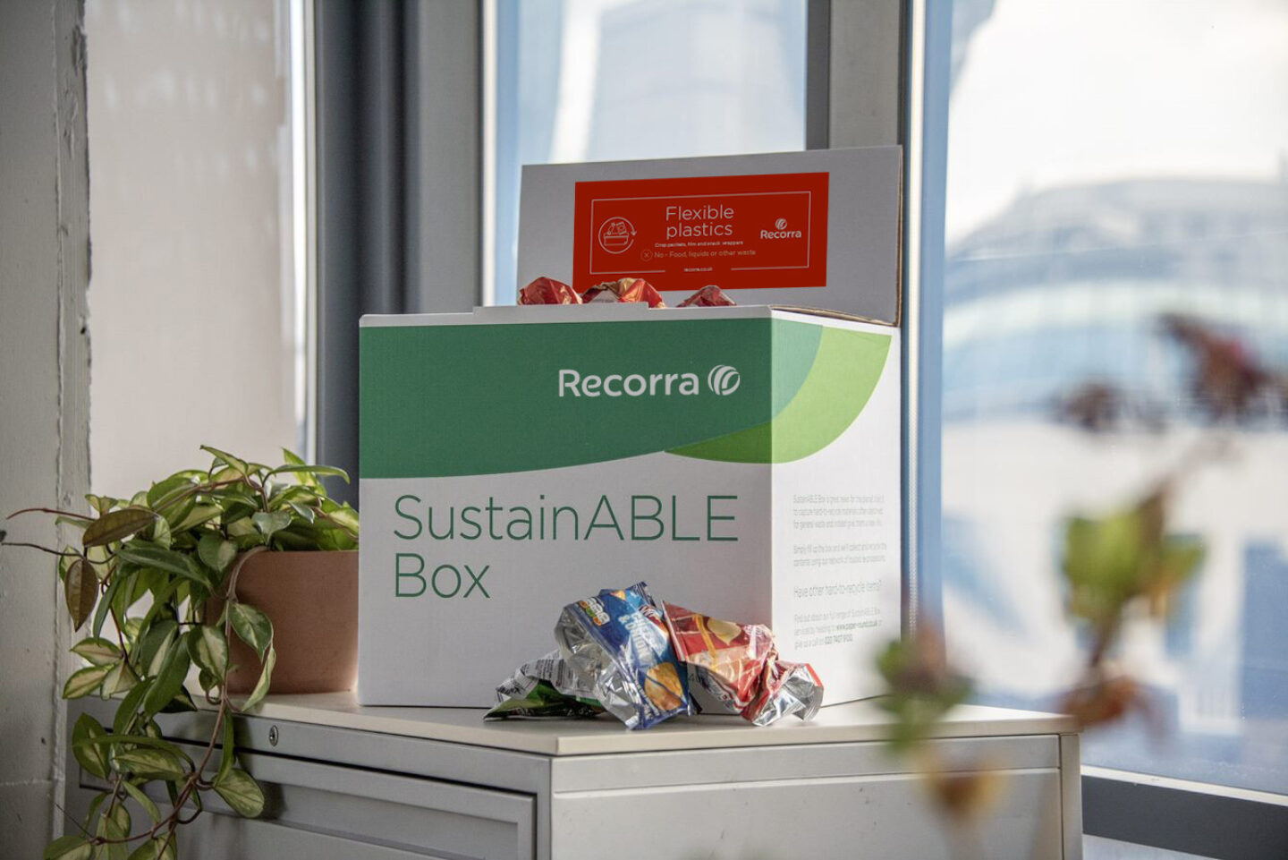 So, why us? Recorra Office Supplies, has 3 primary sustainable goals, to: Champion circular economy solutions Our office supplies are built upon circular economy principles. As a waste management company, this makes complete sense. We use the waste we collect to create new, innovative products which have a second life. This is, in part, thanks to our SustainABLE Box, which allows for those hard-to-recycle items, such as crisp packets, coffee pods and stationery items to be transformed into new items. Treating plastic waste as the valuable resource is it.
