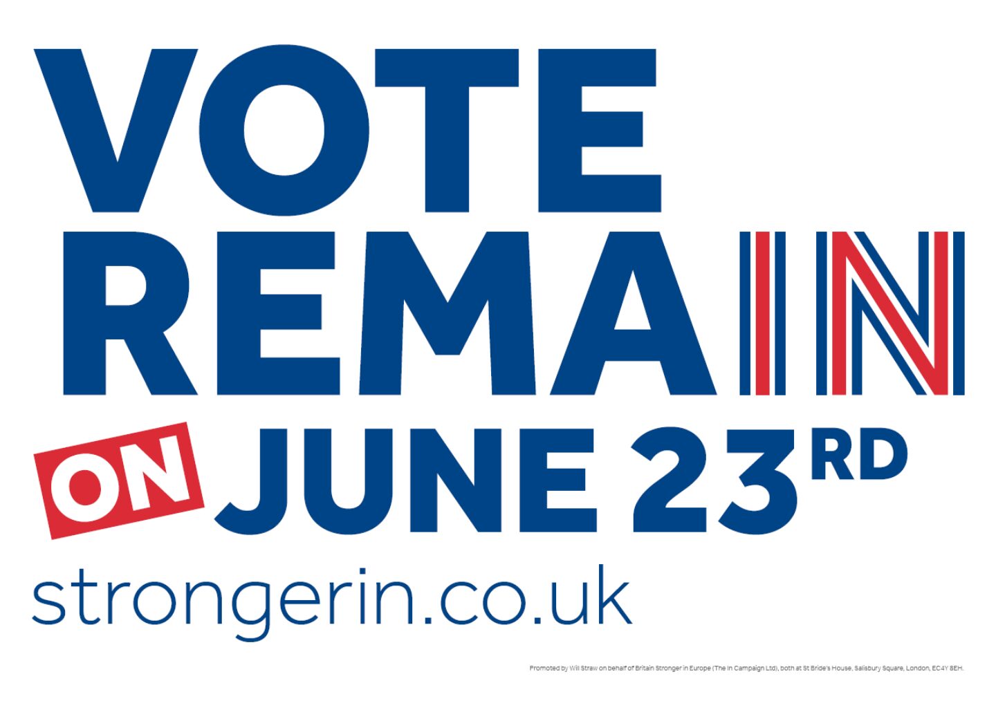 Finally, it is said that you can judge someone by the company that they keep. Currently in the Leave camp, we have Donald Trump, Vladimir Putin, Nigel Farage, George Galloway, and Marine Le Pen. The campaign is largely financed by dodgy hedge fund managers. It should surely give pause for thought when entering the ballot box to think that this is the company that Leave is keeping.So REGISTER to vote if you have not done so already and VOTE on the day. And in my opinion you should be voting REMAIN.